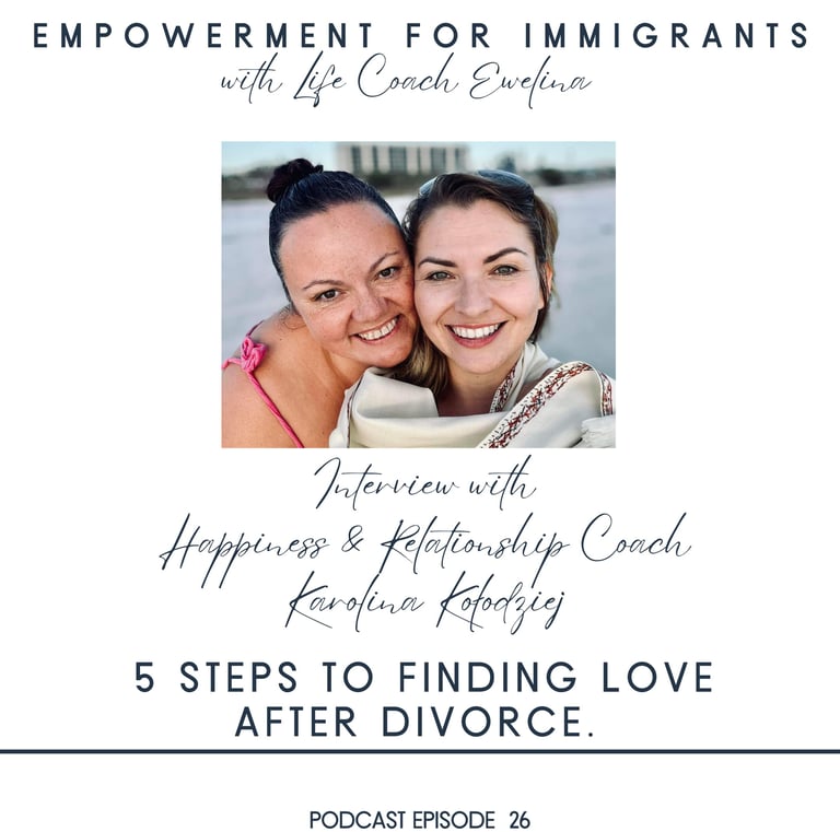 Hello, my friends. This is Ewelina Life Coach for Immigrants, and you are about to hear an interview I did with a dear friend of mine Karolina Kolodziej. This is for all of you single women. It is for those of you who are super frustrated because you feel like there are no good men out there. It's really hard to date nowadays. Our other world is a reflection of our inner world. So today we're gonna talk about the personal reinvention that needs to happen before we meet the man of our dreams. We're going to cover what does it look like when you are building your identity and your self-trust after divorce? And my friend Karolina will tell you exactly what to do before you even consider putting yourself out there how to evaluate your previous relationships so that you don't end up repeating the same side just with another man. How to get to know yourself better so you end up attracting love through authenticity. So the guy that comes your way is perfect for you, right? Because you really know yourself and you've attracted him from that point of knowing yourself, knowing what you want. She tells us what to do when we are ready to start dating and what to do when we realize that we're not attracting the guy that we want. Yet what to do when you realize you're attracting low-quality men. And, of course, she also tells you what a low-quality man is like. What does that creature look like? What to watch out for. She tells us how to elevate our vibrational frequency through love and gratitude.