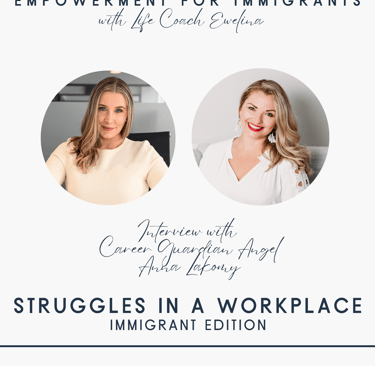 Hi friends, this is Ewelina Life Coach for Immigrants. So good to be back here. I hope you all are doing well. I am doing fantastic. I had to take a bit of a break from recording these podcasts and one day I will explain why, but I am back and so happy to share with you an interview I did with a very special lady.
