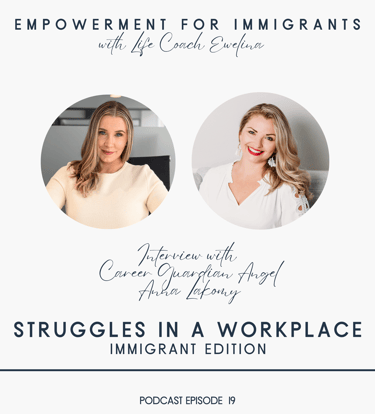 [00:00:30] She is a career guardian angel, and she works with immigrant women. Her name is Anna Lakomy. She was born in the US but both of her parents are Polish. So she grew up in an immigrant household and in her journey she has experienced very similar challenges to what we see amongst us immigrants. I loved talking to Anna because she is kind of like this person in the middle. [00:01:00] She identifies with us and understands us immigrants really well, but also since she was born and growing up here, she understands Americans and their perspective. And I love that because when we move across the world and we establish this new life for us, we need