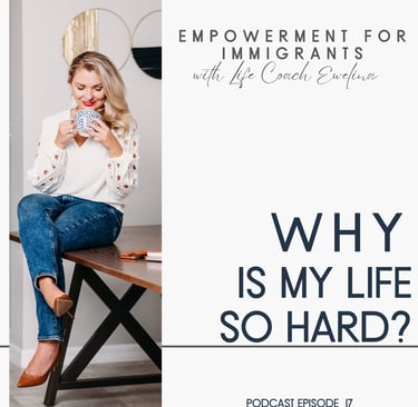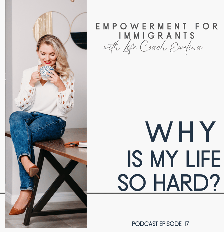 Hi everyone, this is Ewelina life coach for immigrants and today we are gonna bite a big and a bit triggering subject. We are gonna talk about how sometimes we fall into the “poor me” attitude. Have you ever done that? HMM? If you have any self awareness at all you’d agree with me that “Yes, that does happen.” Sometimes we feel sorry for ourselves. I whine. You whine. We all whine. Sometimes we do. Not all the time but sometimes we do. And today we are gonna talk about that whining. How it’s okay for a bit but if you make it a daily practice… your life is gonna feel pretty bad. Yeah so let me ask you a quick question.